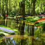 Keukenhof also known as the Garden of Europe, is one of the world’s largest flower gardens. It is situated in the municipality of Lisse, in the Netherlands in the area called the “Dune and Bulb Region” (Duin- en Bollenstreek).  It has an area of 32 hectares. Approximately 7 million flower bulbs are planted in the gardens each year. Keukenhof is widely known for its tulips, it also features numerous other flowers, including hyacinths, daffodils, lilies, roses, carnations and irises.