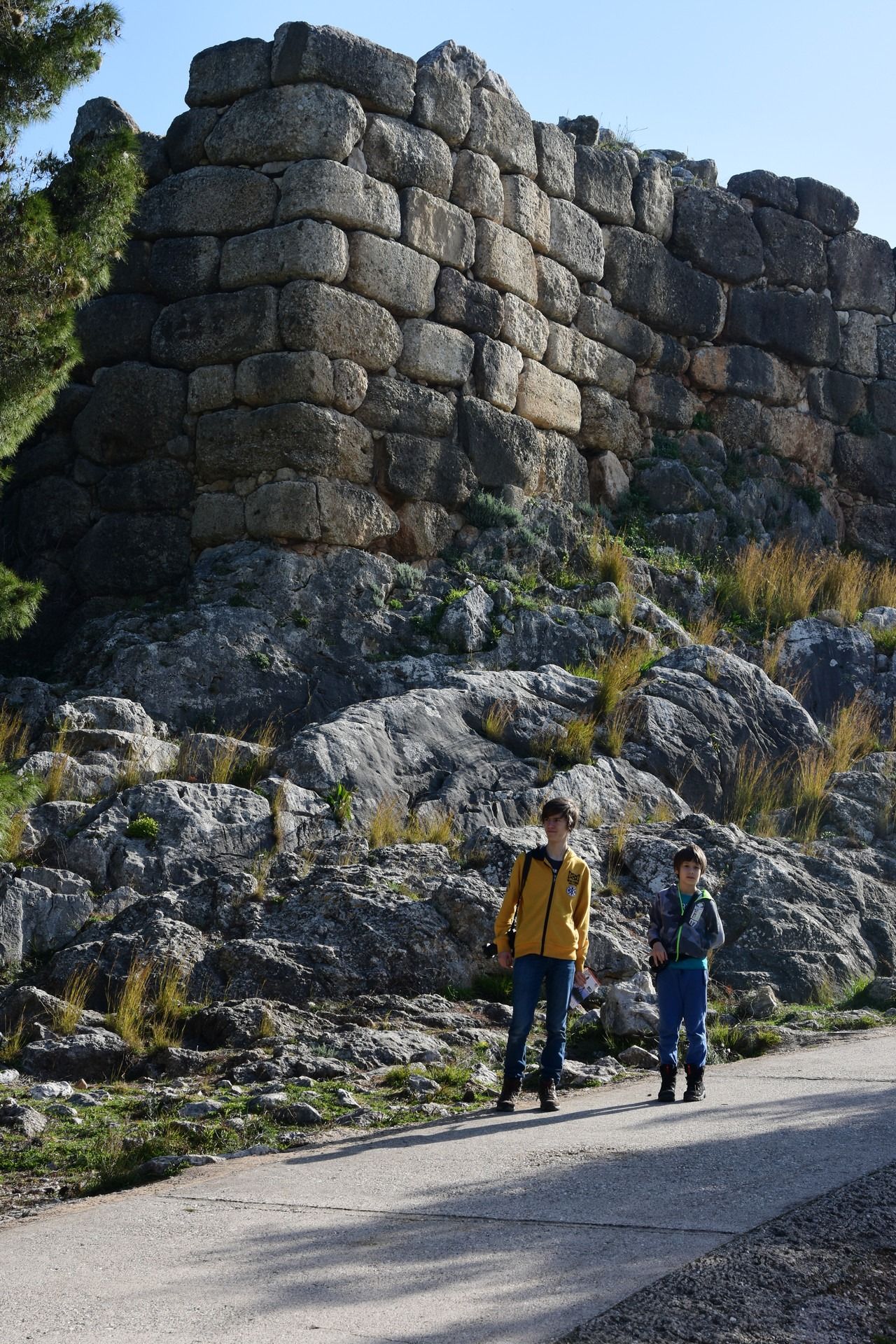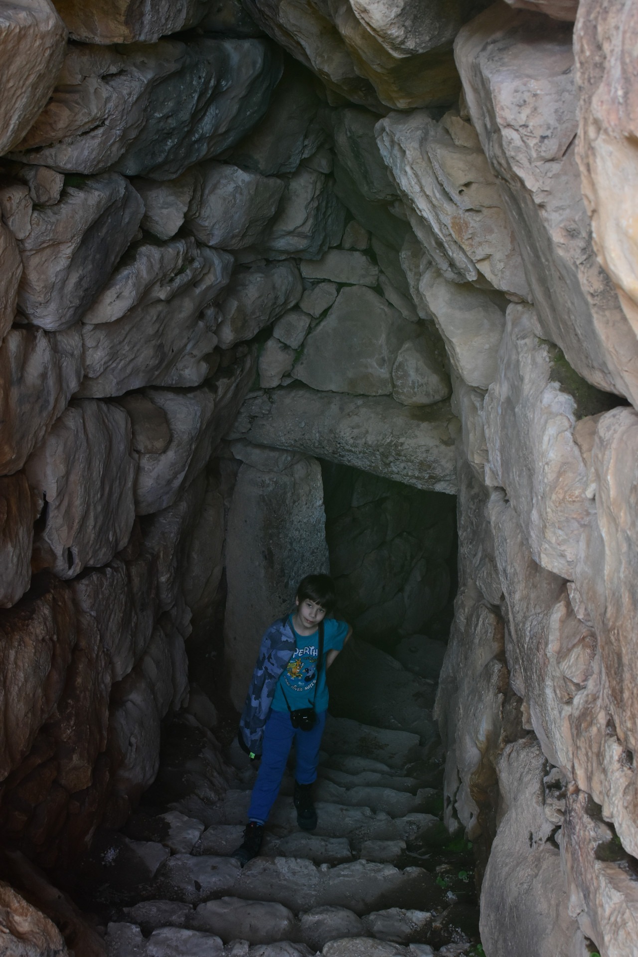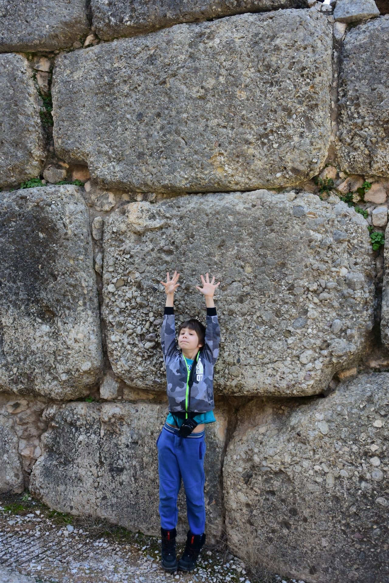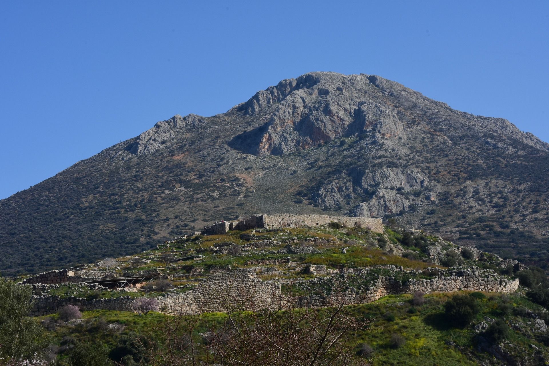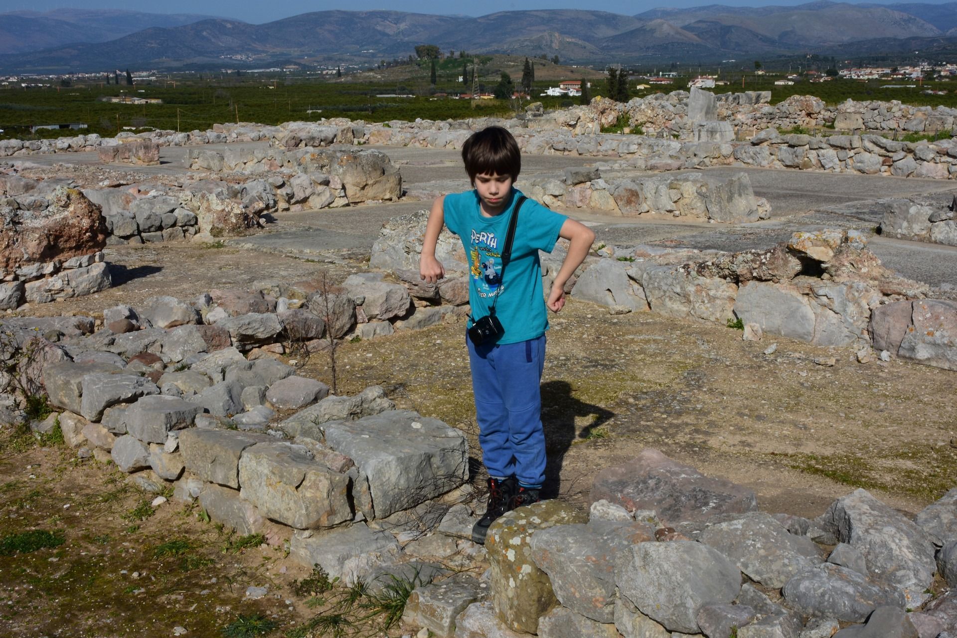 Tiryns is a Mycenaean citadel near Mycenae, and the location from which mythical hero Heracles performed his 12 labors. It is a hill fort with occupation ranging back seven thousand years, from before the beginning of the Bronze Age. It reached its height between 1400 and 1200 BC, when it was one of the most important centers of the Mycenaean world, and in particular in Argolis. Its most notable features were its palace, its Cyclopean tunnels and especially its walls, which gave the city its Homeric epithet of “mighty walled Tiryns”. The famous megaron of the palace of Tiryns has a large reception hall, the main room of which had a throne placed against the right wall and a central hearth bordered by four Minoan-style wooden columns that served as supports for the roof. Two of the three walls of the megaron were incorporated into an archaic temple of Hera. The site went into decline at the end of the Mycenaean period, and was completely deserted by the time Pausanias visited in the 2nd century AD. This site was excavated by Heinrich Schliemann in 1884–1885. Despite the destruction of the palace in 1200 BC, the city population continued to increase and by 1150 BC it had a population of 15,000 people.