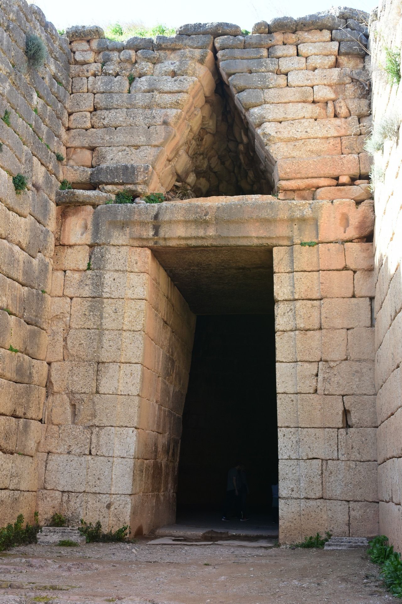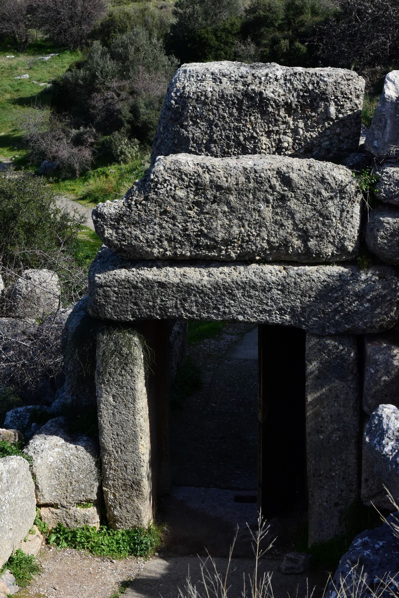 The Tomb of Clytemnestra is tholos type tomb built in c. 1250 BC near Mycenae citadel. A number of architectural features such as the semi-column were largely adopted by later classical monuments of the first millennium BC, both in the Greek and Latin world. The Tomb of Clytemnestra with its imposing façade is the most monumental tomb of that type after the Treasury of Atreus. The tomb was named after Clytemnestra, the wife of king Agamemnon, mythical ruler of Mycenae and leader of the Greeks in the Trojan War. However, it has been also suggested by modern scholars that this might have been Agamemnon’s tomb. Further away from the Citadel stands the Treasury of Atreus also known as Tomb of Agamemnon. It is a large tholos or beehive tomb on Panagitsa Hill, constructed during the Bronze Age around 1250 BC. The lintel stone above the doorway weighs 120 tons, and with approximate dimensions 8.3 x 5.2 x 1.2m is the largest of its kind in the world. The tomb was used for an unknown period. Mentioned by Pausanias, it was still visible in 1879 when the German archeologist Heinrich Schliemann discovered the shaft graves under the ‘agora’ in the Acropolis at Mycenae. The tomb has probably no relationship with either Atreus or Agamemnon, as archaeologists believe that the sovereign buried there ruled at an earlier date than the two; it was named thus by Heinrich Schliemann and the name has been used ever since. Still, in its monumental shape and grandeur it is one of the most impressive monuments surviving from the Mycenaean period.