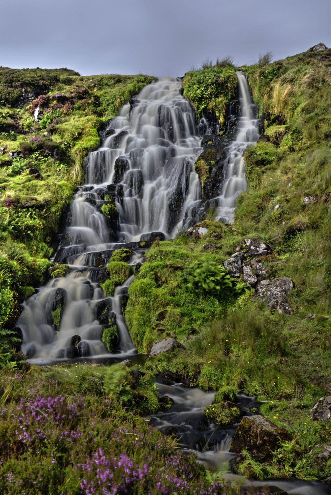 Following morning we set out to explore north-west end of Isle of Skye – with iconic Old Man of Stor. Before starting the hike we briefly stop at yet one more lovely waterfall – Bride’s Veil Falls. From there we glimpse the pinnacle of Old Man Stor still in sunlight while dark clouds slowly roll in.