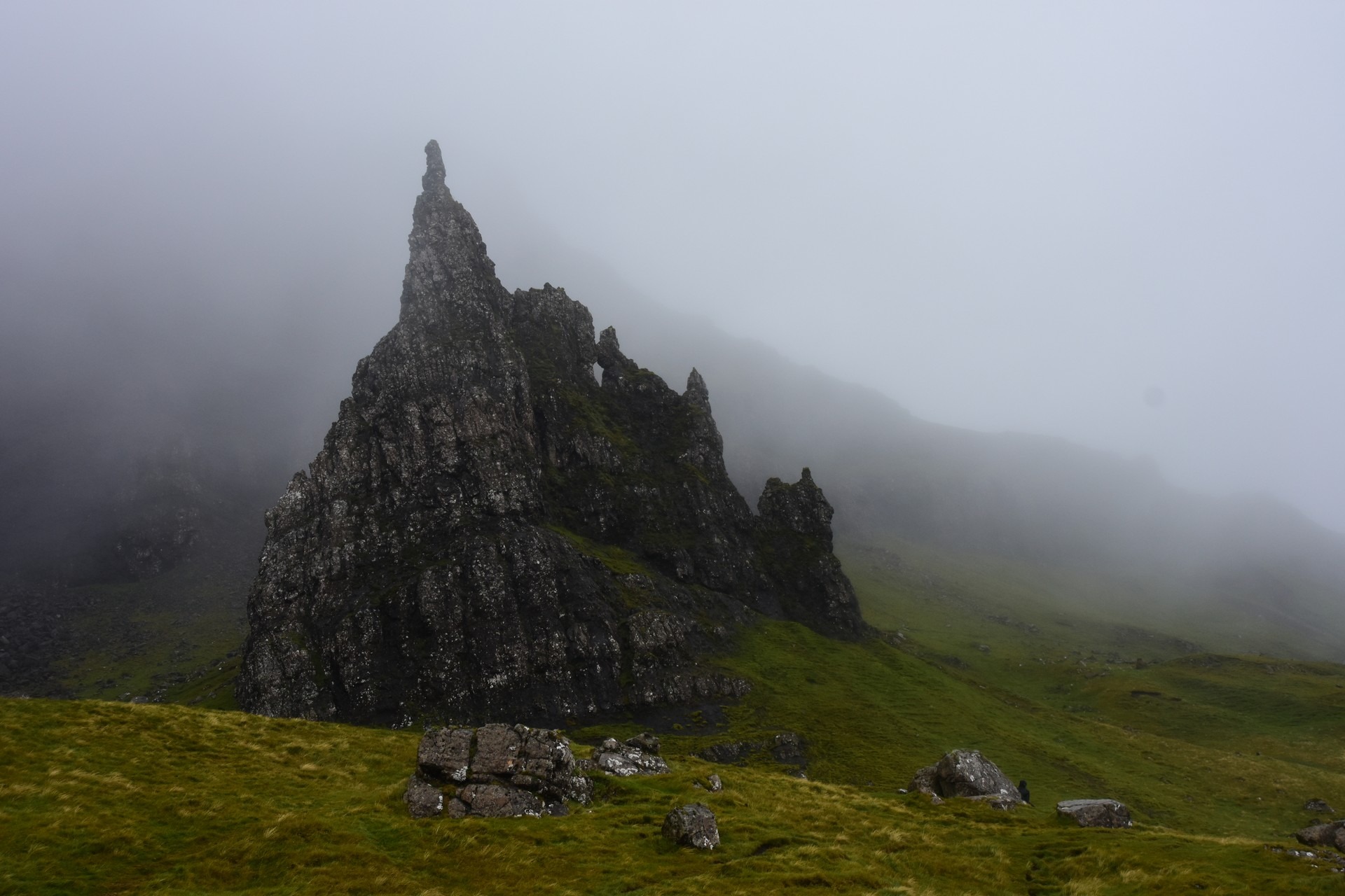 We suit up for the wind and drizzling rain but underestimate the strength – the hike up to the Old Man of Storr. The wind is so strong we barely can stop from falling over, and it runs the drizzle into abrasive – we came prepared to get wet. But not to the point of being wet all the way through down to the underwear. Still the scenery of Storr Sanctuary is amazing. No wonder it was picked as the location of sci-fi movie Prometheus directed by Ridley Scott.