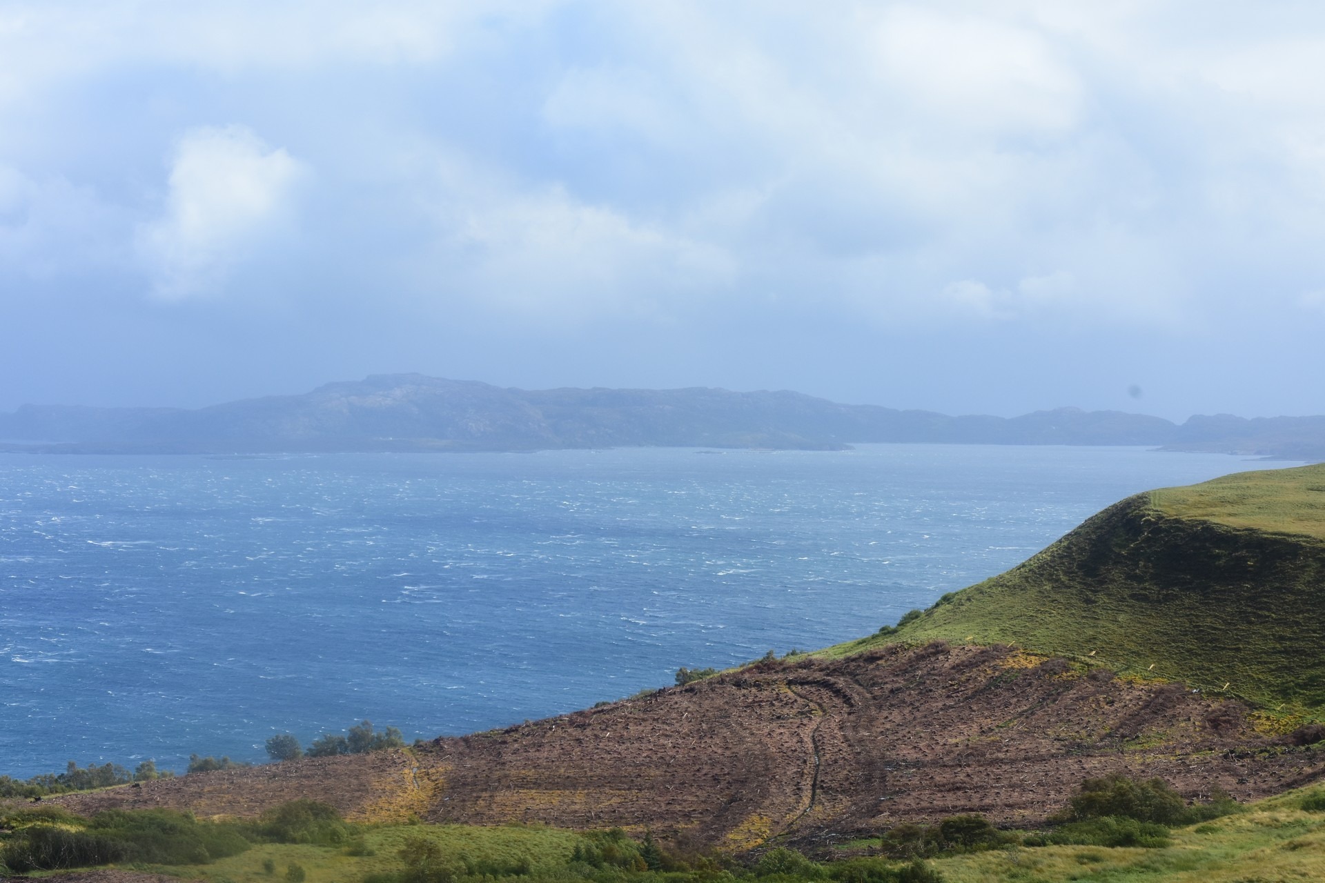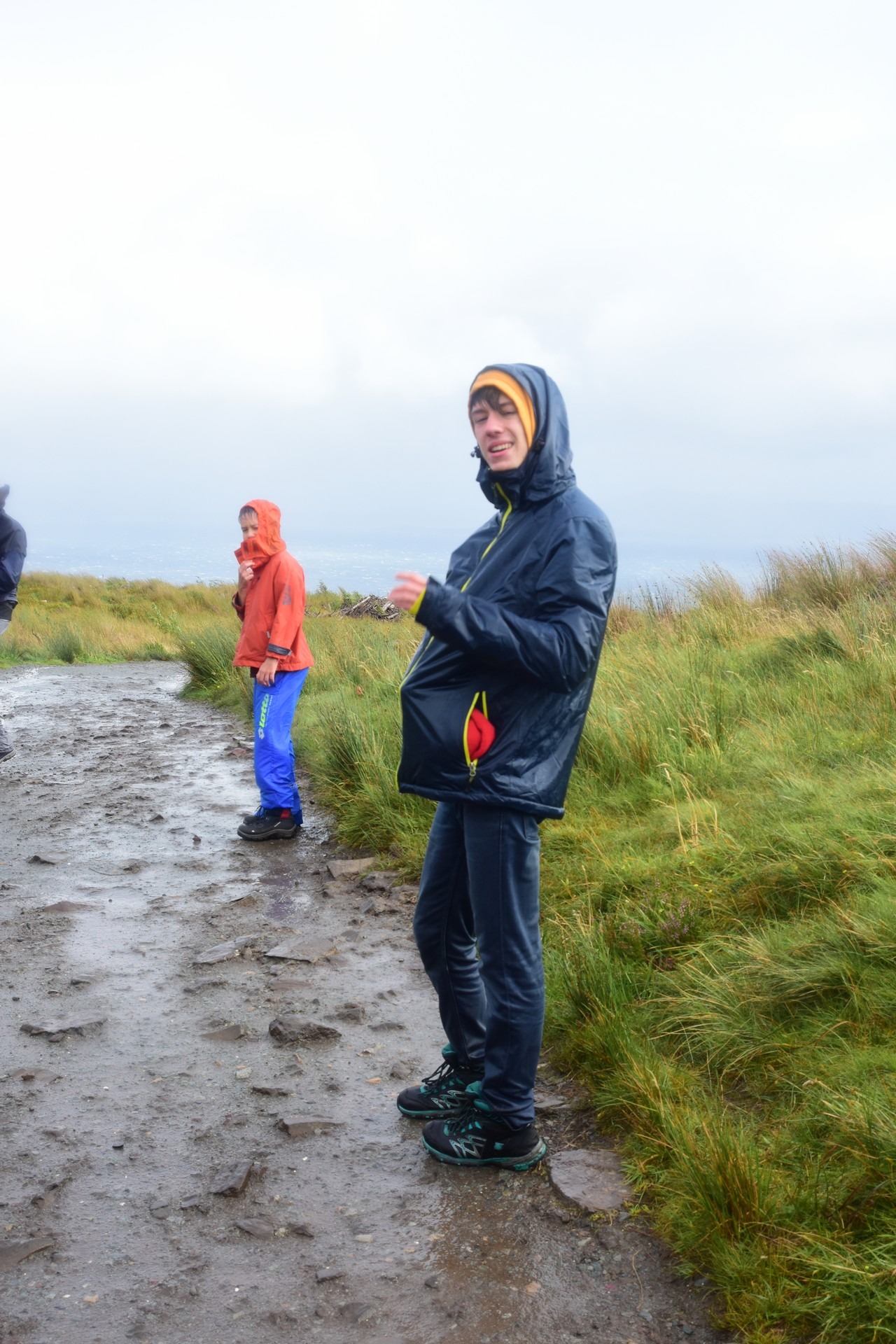 We change into the dry clothes we brought and hide from the wind… and on towards next stop – Lealt Falls, but just a brief stop there as wind still howls.