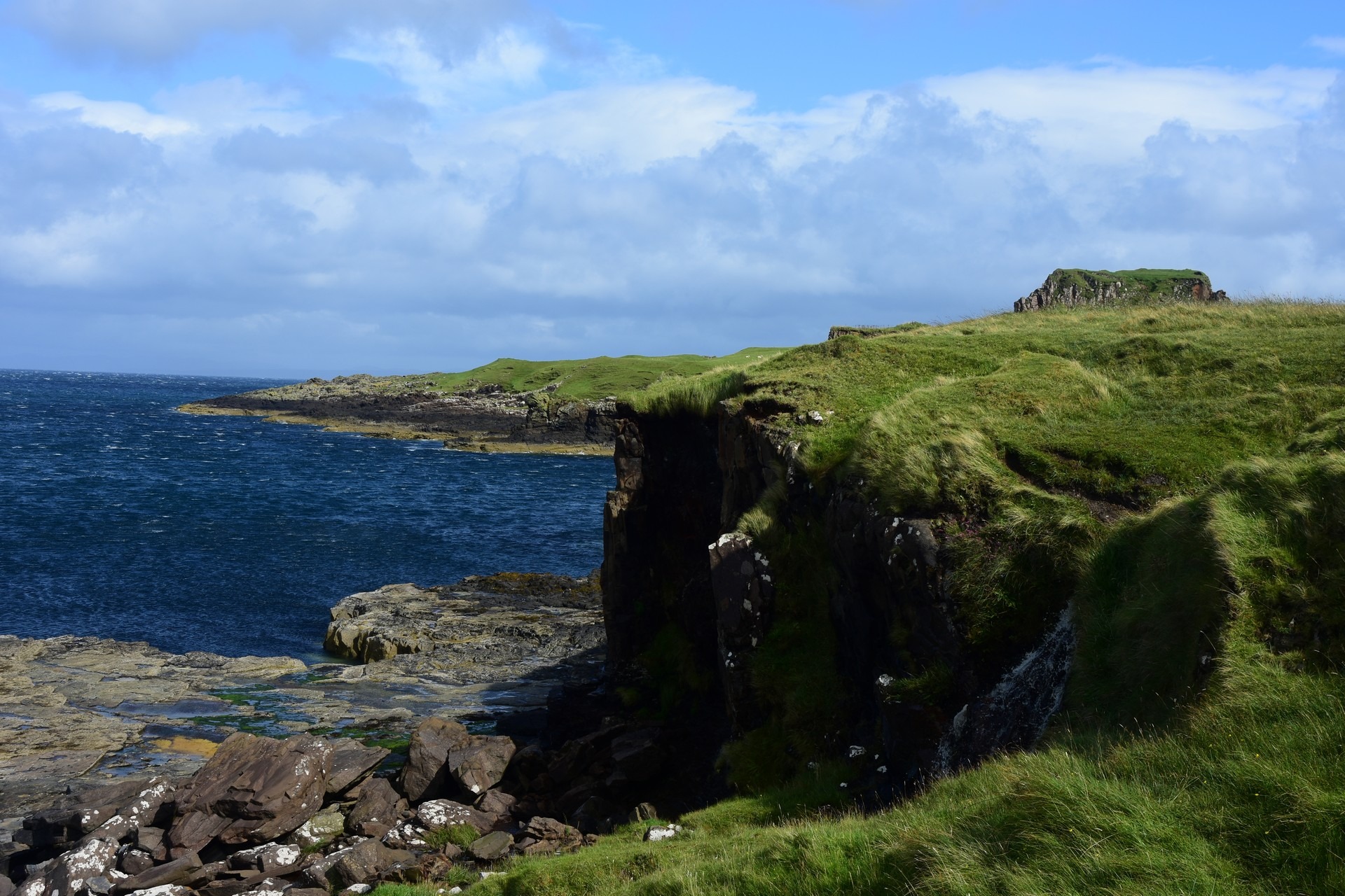 In the distance we glimpse 55 m tall Mealt falls plunging from sea cliffs of Kilt rock right into the Sound of Raasa. Obviously that is going to be our next stop.