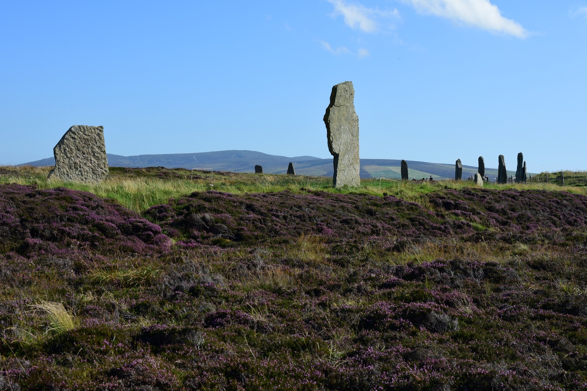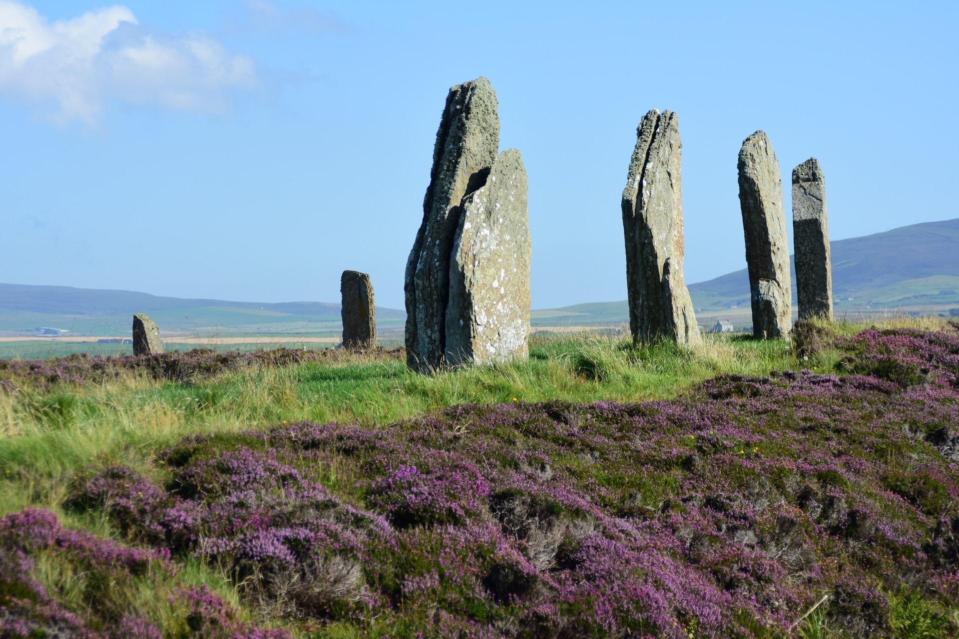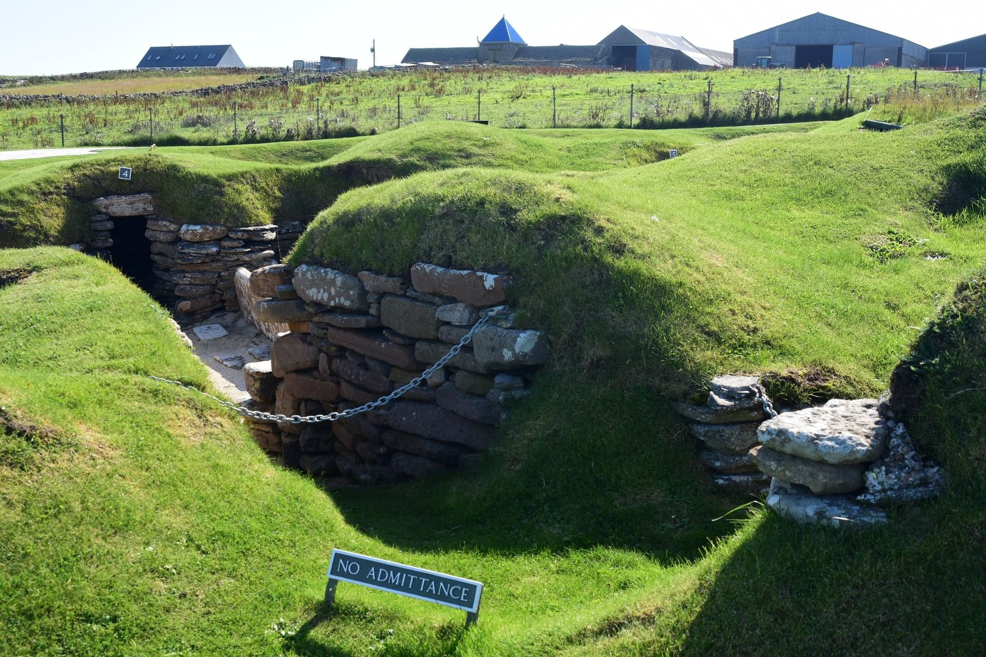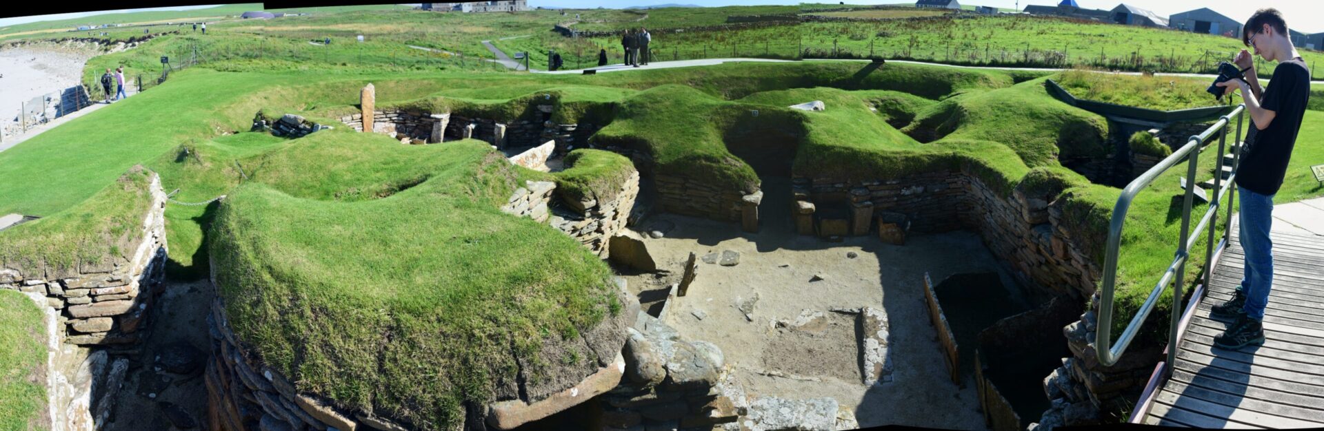 The local people are known as Orcadians; they speak a distinctive dialect of the Scots language and have a rich body of folklore. Orkney contains some of the oldest and best-preserved Neolithic sites in Europe; the “Heart of Neolithic Orkney” is a designated UNESCO World Heritage Site including, among other sites, Skara Brae – a stone-built Neolithic settlement, located on the Bay of Skaill on the west coast of Mainland, the largest island in the Orkney archipelago of Scotland. Consisting of ten clustered houses, made of flagstones, in earthen dams that provided support for the walls; the houses included stone hearths, beds, and cupboards. A primitive sewer system, with “toilets” and drains in each house, carried effluent to the ocean. The site was occupied from roughly 3180 BC to about 2500 BC and is Europe’s most complete Neolithic village. Older than Stonehenge and the Great Pyramids of Giza, it has been called the “Scottish Pompeii” because of its excellent preservation.