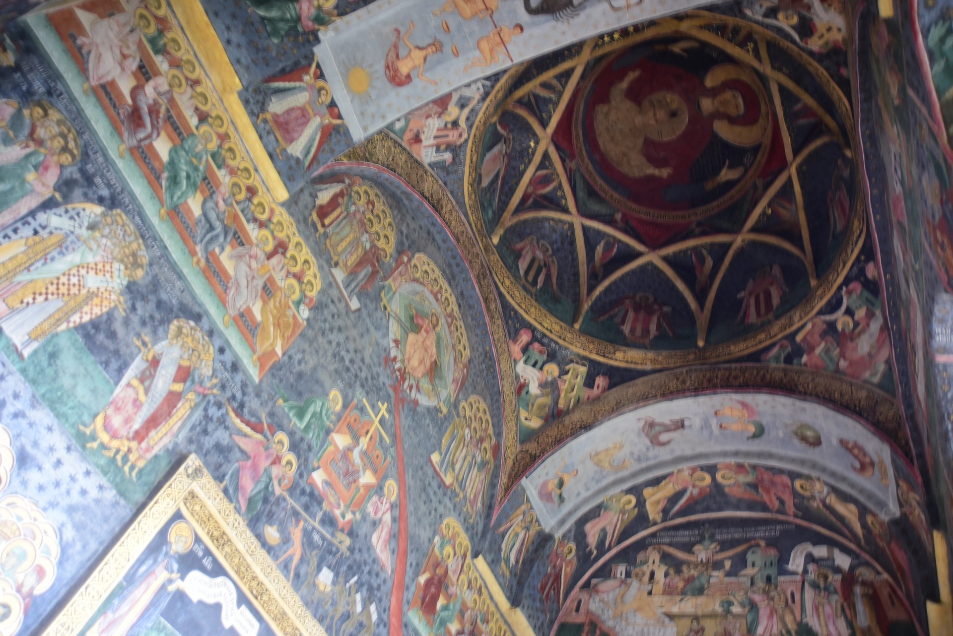 The architecture of the church contains both Byzantine and Gothic elements, and some elements typical to other painted churches of northern Moldavia. Both interior and exterior walls are covered by mural paintings, which are of great artistic value and depict biblical episodes from the Old and New Testament. The paintings date from around 1601, which makes Sucevița one of the last monasteries to be decorated in the famous Moldavian style of exterior paintings.