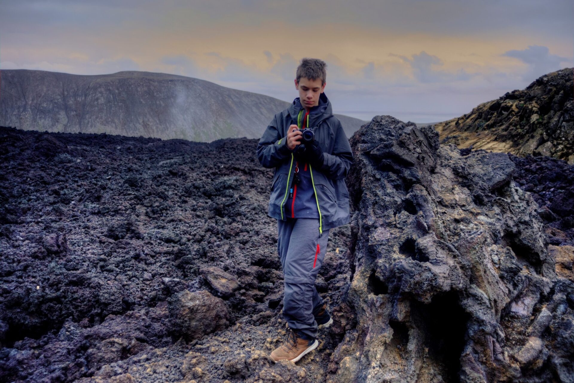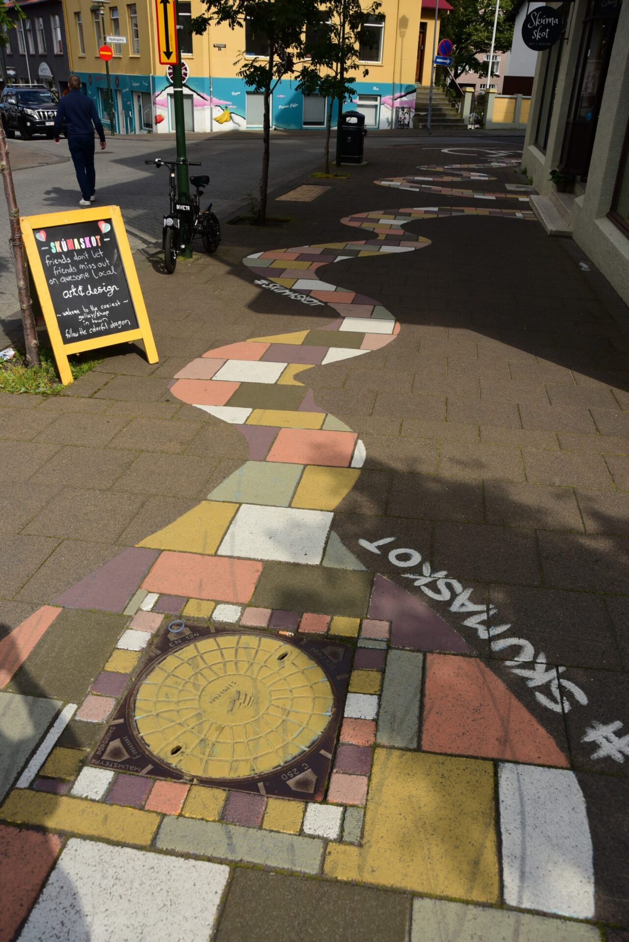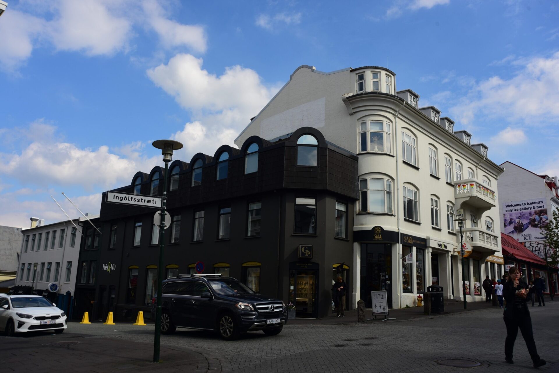 Late at night while driving towards Grindavik we get a first glimpse of the volcano Geldingadalir as it lights up the night sky. Campground in Grindavik is overflowing with campers parked outside of it (two days from now I get interviewed by Icelandic TV about the crowds here) but we manage to park just inside by the curb. In the morning we drive to Reykjavik to buy the replacement drone (here a note about DJI service both in general – the new replacement drone has been delivered to my home address in Poland, and in DJI store in Reykjavik, which agreed to sell the replacement at the lowest price, thanks guys). It’s an interesting capital city considering the size and mood of it.