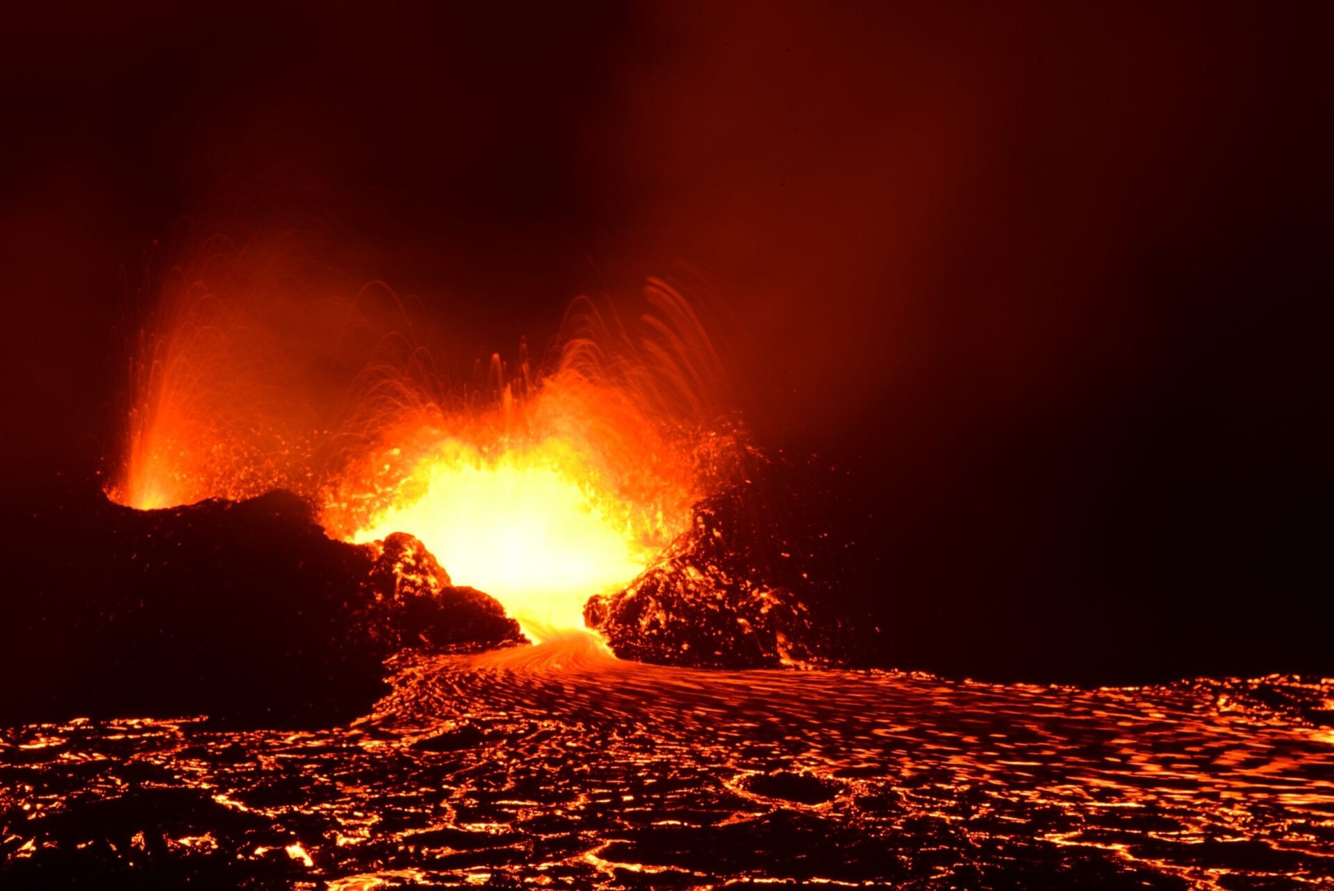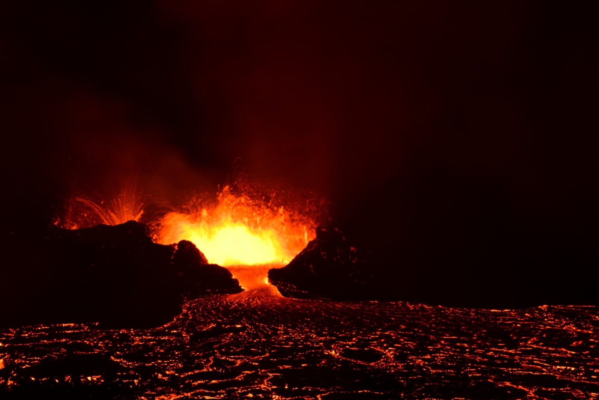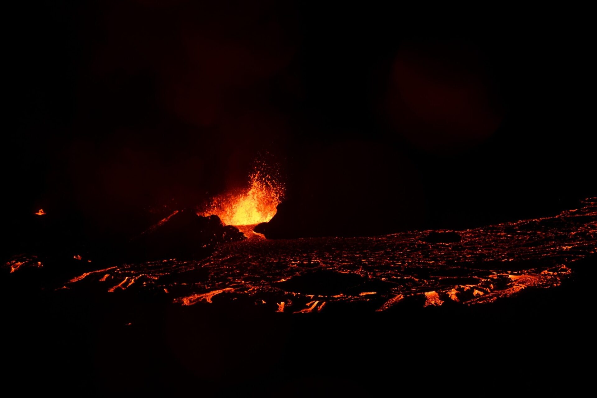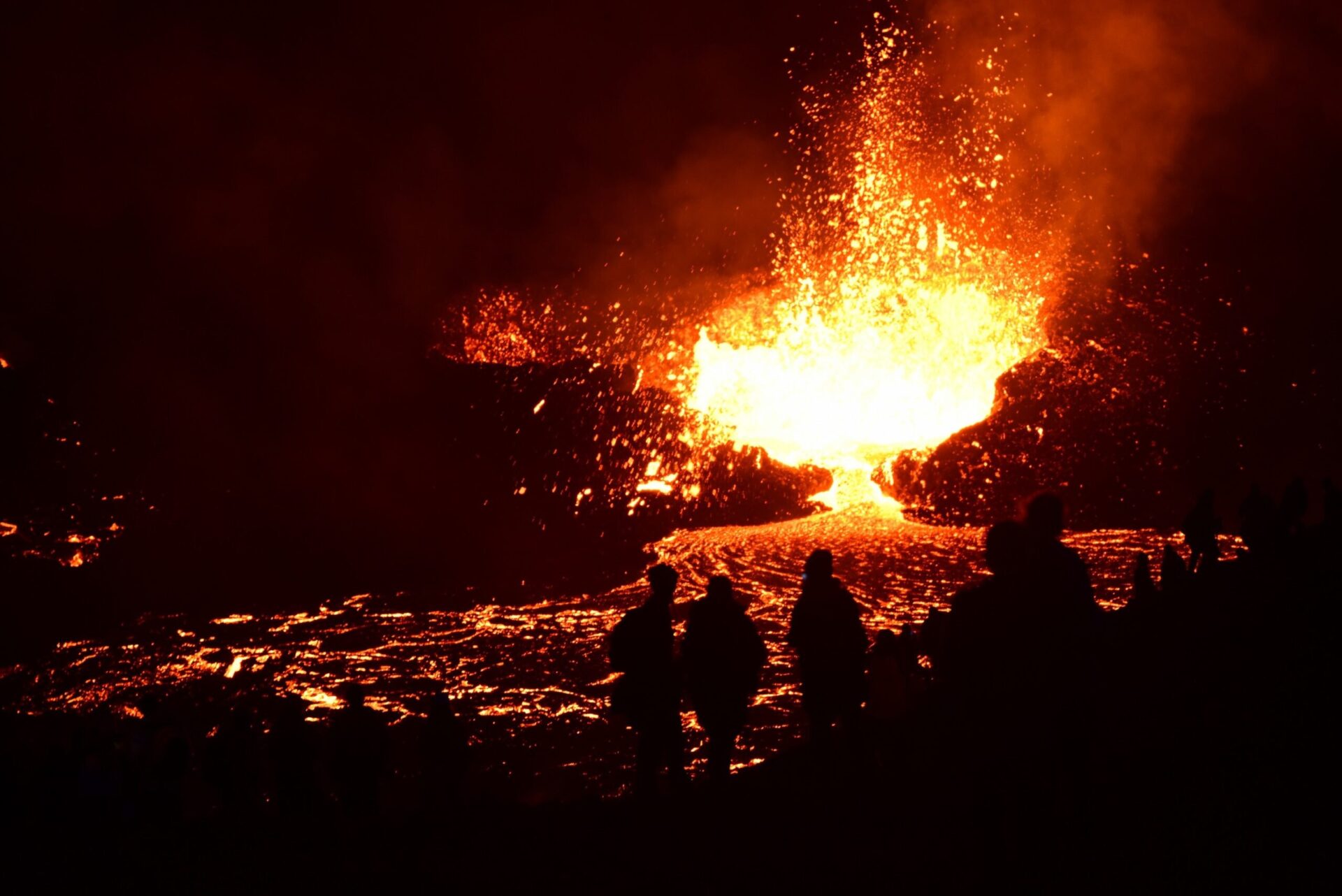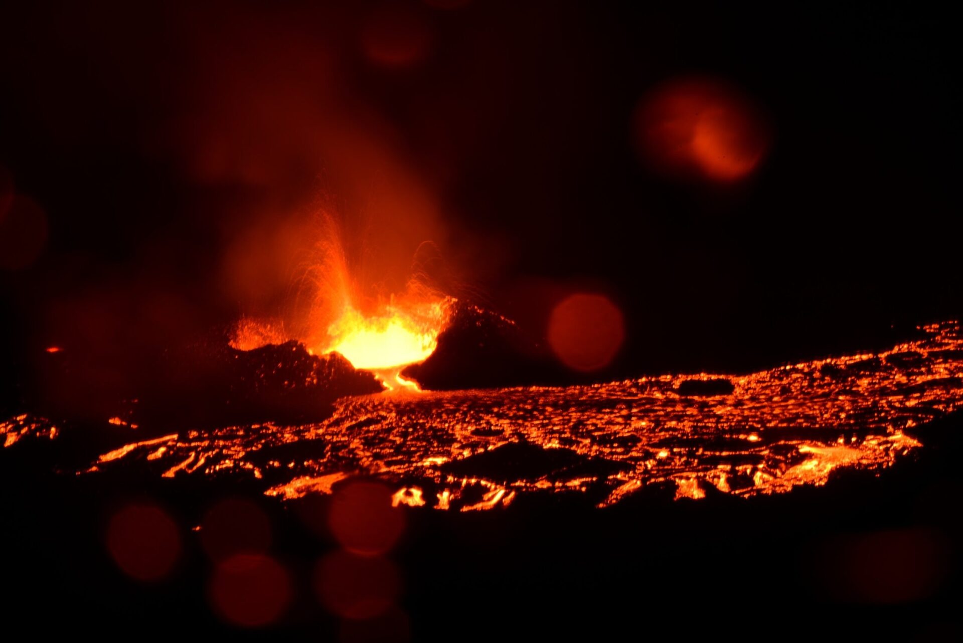 Back in Grindavik campground we put up a tent to make sure we have a place to sleep when we return from the volcano and set off. First amazement comes when we come up to the lava dam where we parted the volcano last year. Then the lava was far away still. Today – it fills the valey beyond with tongues rising above if just about to spill over.