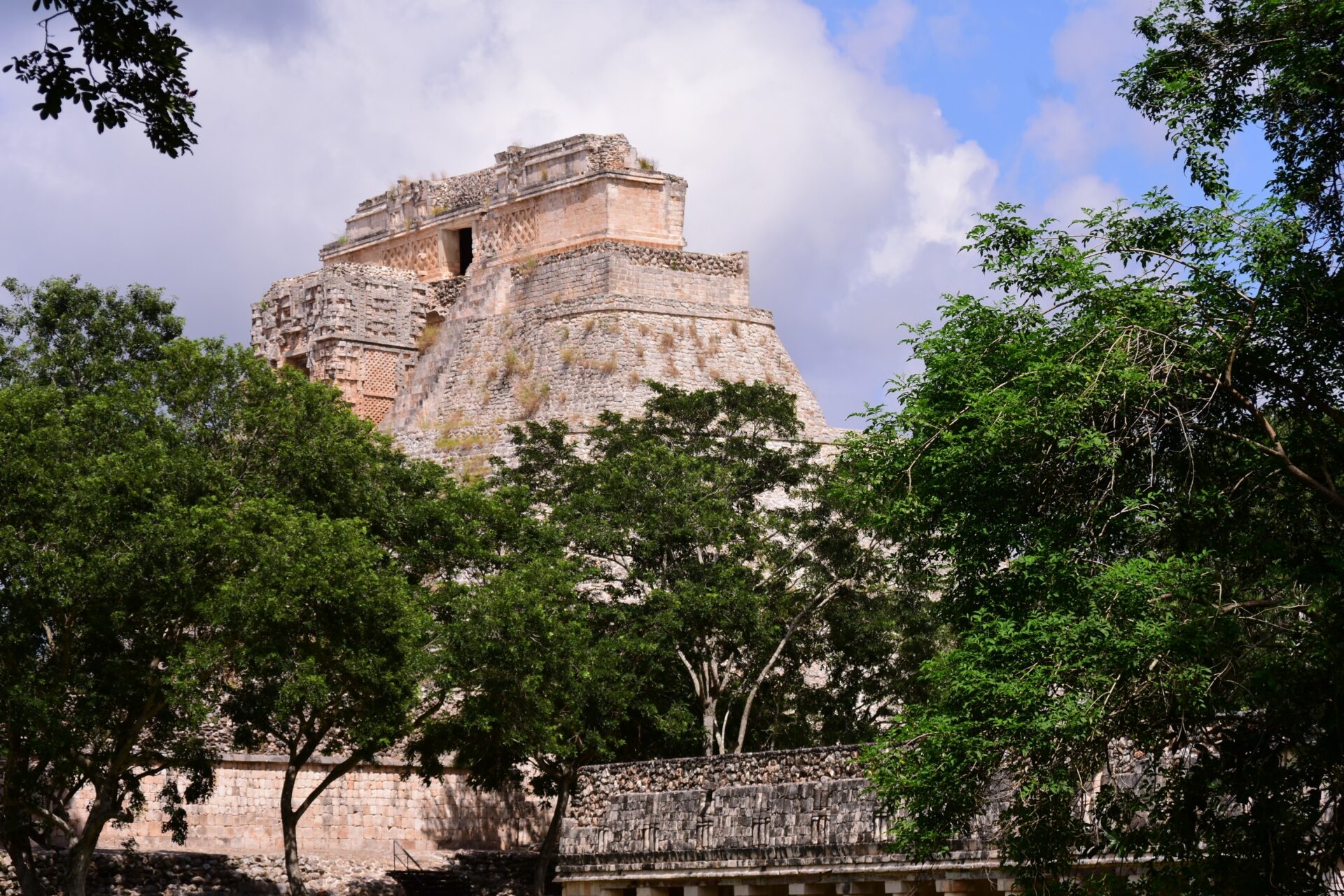 Uxmal is an ancient Maya city of the classical period and is considered one of the most important archaeological sites of Maya culture. It was designated a UNESCO World Heritage Site along with the nearby ruins of Kabah, Sayil and Labna. Its buildings are typical of the Puuc style, with smooth low walls that open on ornate friezes based on representations of typical Maya huts. These are represented by columns and trapezoidal shapes.